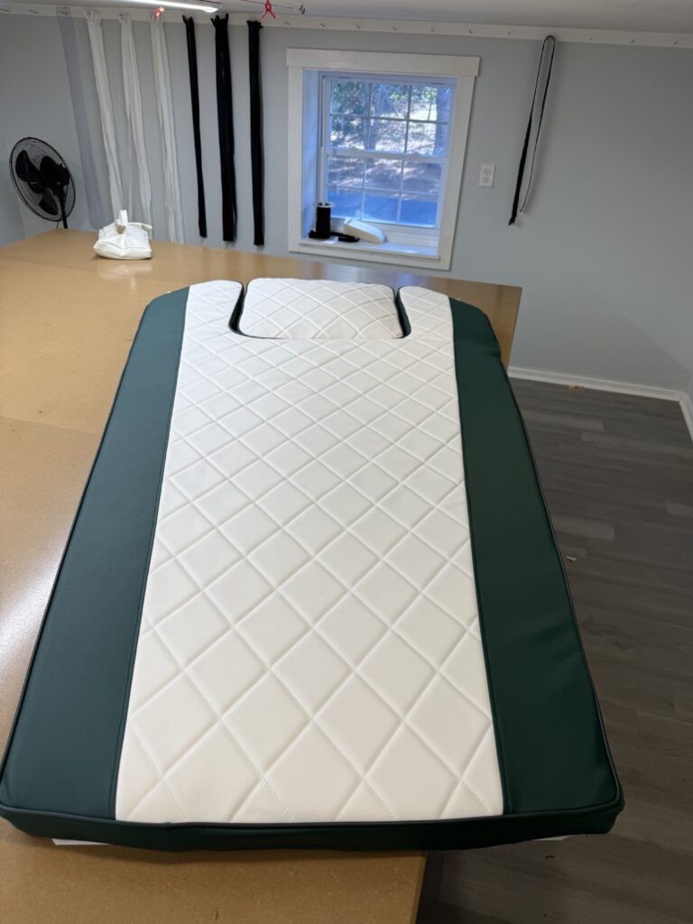 Full interior, sun pads and helm seat re-upholstery using marine-grade vinyl and foam — blending comfort, durability, and Rhode Island craftsmanship in every stitch.